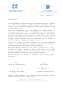 Innovation certificate 23 February 2026 SKAMER-ACM is among the 500 most innovative companies in Poland.